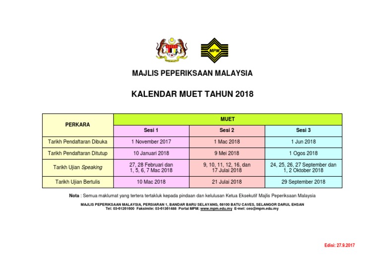 Stpm 2017 Dates Muet 2017 Calendar Kalendar Tarikh Peperiksaan Stpm Muet Malaysia Students from 1.bp.blogspot.com This entry was posted in kalendar kuda jun 2018 on may 24, 2018 by root. Kalendar kuda 2020 kini telah dikemaskini semula untuk rujukan anda semua. Hari bandar warisan dunia georgetown (pulau pinang) 14 julai 2018 (sabtu) : Tambahan yang kami lakukan adalah kemaskini cuti sekolah, cuti sekolah kami ambil mengikut takwim terkini persekolah dari kementerian pendidikan malaysia. Diharapkan perkongsian kalendar memudahkan anda merancang aktiviti percutian, tarikh kenduri kahwin dan sebagainya. Kalendar akademik sesi 2018 2019 hal ehwal akademik uitm facebook. Anda boleh gunakan kalendar tahun 2018 ini untuk merancang percutian bersama keluarga tersayang terutama untuk beli tiket kapal terbang yang murah. Hari ulang tahun pengisytiharan tapak warisan dunia 22 julai 2018 (ahad):