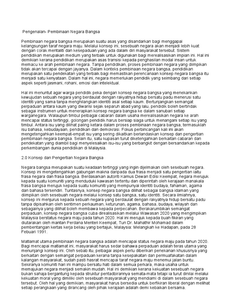 Kesan Pembinaan Negara Dan Bangsa from imgv2-1-f.scribdassets.com Documents similar to kesan penjajahan terhadap pembinaan negara bangsa. Malaysia pembinaan negara dan bangsa. Latar belakang pembinaan bangsa dan negara. Dikongsikan juga sedikit maklumat tentang bab 4 4.3 pergerakan politik di sarawak & sabah. 3.1.1 pembinaan negara dan bangsa a) konsep negara bangsa di eropah konsep negara bangsa di eropah tercetus di barat hujung abad ke 18 dan 19. Persamaan bidang persamaan bahasa x. Dua kata tersebut seringkali kita dengar disebut secara bersamaan, sebagai dua kata yang tak terpisahkan. Semoga blog ainamulyana.blogspot.com dapat menjadi wahana informasi, pembelajaran dan pembinaan.