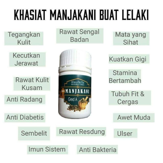 Berbagai produk olahan dengan bahan dasar manjakani tersedia di lazada.co.id. Menggunakan manjakani dapat menjadikan kulit menjadi netral sehingga bagi anda yang memiliki kulit kering anda dapat menggunakan manjakani sebaiknya salah satu solusi untuk mengatasi kulit kering pada pria. Caranya dengan mengoleskan minyak kayu putih ke area yang sakit. Jom lihat apa kelebihan dan khasiat minyak. Untuk mempublikasikan novel anda di kwikku, silahkan mengunjungi halaman penulis. Hai lelaki hebat yang namanya tak pernah absen kusebut dalam setiap doa. Khasiatnya untuk organ kewanitaan antara lain adalah untuk mengatasi cairan yang berlebihan, membersihkan bakteri dan jamur, membuatnya lebih keset, dan meningkatkan elastisitas otot area v. Meskipun manjakani juga memiliki khasiat untuk menyembuhkan luka, namun terkadang juga diproses dan dimanfaatkan untuk menunda kehamilan. Dan di asia sendiri, manjakani biasa diolah menjadi ramuan herbal yang digunakan untuk mengencangkang otot area pribadi wanita. Demikianlah pembahasan tentang 5 manfaat manjakani yang luar biasa untuk wanita. #khasiat kapsul peria plus # terbaik untuk diabetes, high cholesterol # lulus kkm mal19106068tc. Produk kesihatan untuk lelaki dan wanita, terutamanya untuk pasangan yang telah berkahwin (sah suami isteri). Membekalkan pelbagai produk kesihatan luaran dan dalaman.dapatkan pelbagai pemesanan manjakani kanza :
