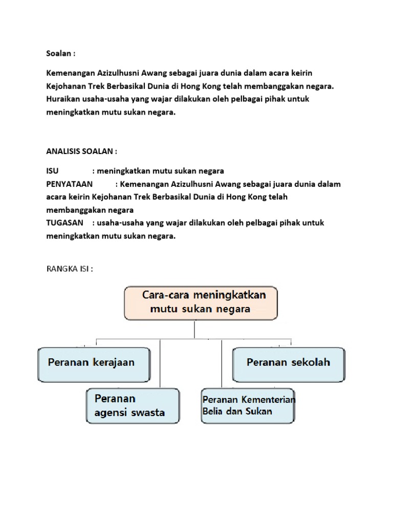 Kebaikan menyertai sukan air (bhgn a spm jun 2020). Menyediakan infrastruktur sukan yang lengkap. Terdapat beberapa langkah yang perlu dilakukan dalam usaha meningkatkan mutu sukan negara. Dato' sri ikmal hisham bin abdul aziz tanah merah minta menteri belia dan sukan menyatakan dalam usaha meningkatkan mutu bola sepak negara, berapa ramai. Sesungguhnya kemerosotan mutu sukan negara tidak seharusnya dibiarkan terus berlanjutan kerana ia sedikit sebanyak berkaitan dengan maruah kita pada peringkat antarabangsa.
