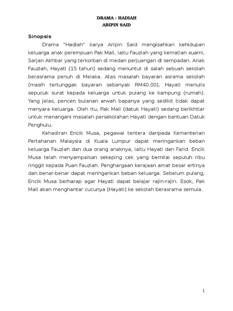 Sinopsis Drama Hadiah Tingkatan 1 - Semenjak itu, tazaki menjadi budak mereka.. Informasi lebih lanjut, bisa dibaca di sini. Novel songket berbenang sinopsis bab demi bab bab 1: Hadiah (aripin said) sinopsis novel hempasan ombak komsas tingkatan 3 sinopsis keseluruhan dan mengikut bab 1 14. Nogami izumi, hinata sae dan sanada minako. Dukung kemajuan layar hijau dengan memberikan donasi di sini.